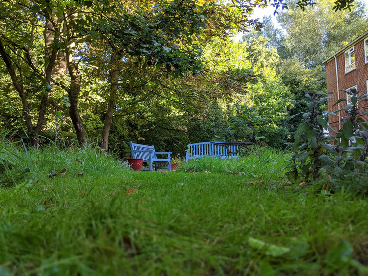 The layout consists of smaller loops and a larger figure of eight route which enables and encourages wandering through the garden, reducing chance of confusion and increasing independence in the space. The paths are zimmer-frame and wheelchair friendly, and also provide a safer CFH (critical fall height) than traditional, more expensive path options. The grass grows through the matting, offering year-round use, and the immersion of being amongst more greenery, but safely. They also increase the 'green to grey' ratio, grey being hard landscaped areas, such as patios. Having a high green to grey ratio plays an important role in the healing nature of outdoor spaces.