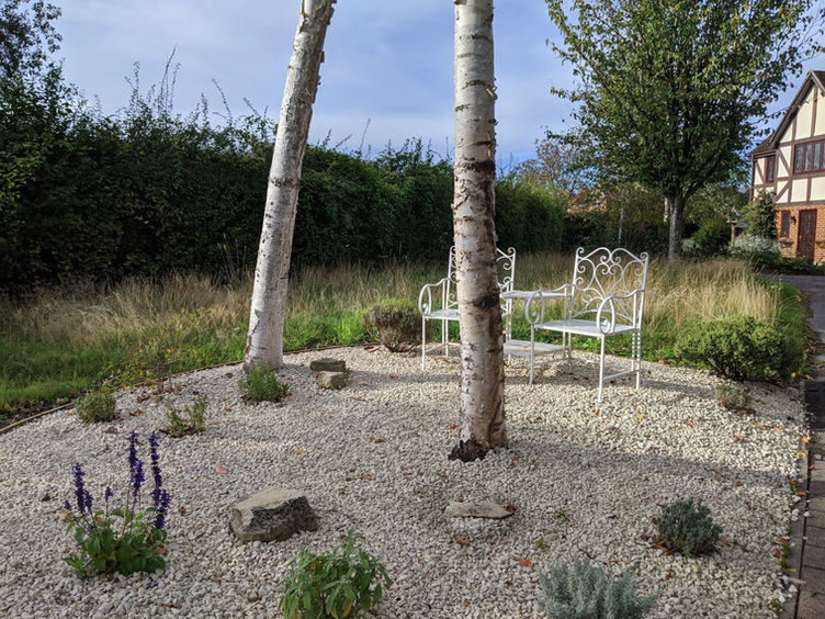 The gravel garden is framed by the wildflower, which consists of native species. The wildflower is in its first year currently and will evolve and take on new colours and varied dominant plants year on year.