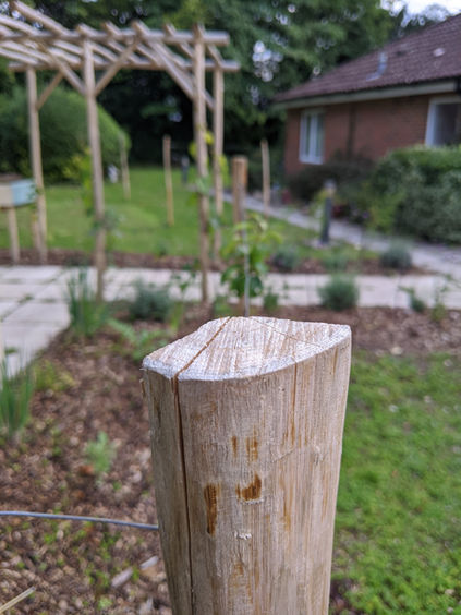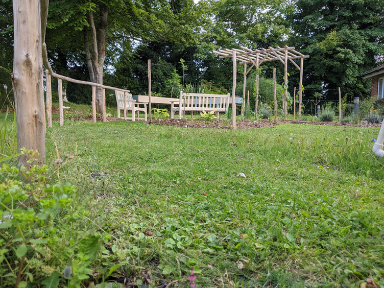 The main features of this garden include a dramatic pergola, complete with four different varieties of Grape Vines ascending the posts. The pergola is made from Sweet Chestnut wood, a super rot-resistant hardwood from a local sustainable coppice woodland.